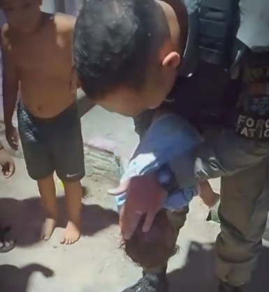 O patrulheiro da Força Tática Delta, soldado Santos Lima, agiu com precisão e rapidez, aplicando a manobra de Heimlich e salvando a vida do bebê.