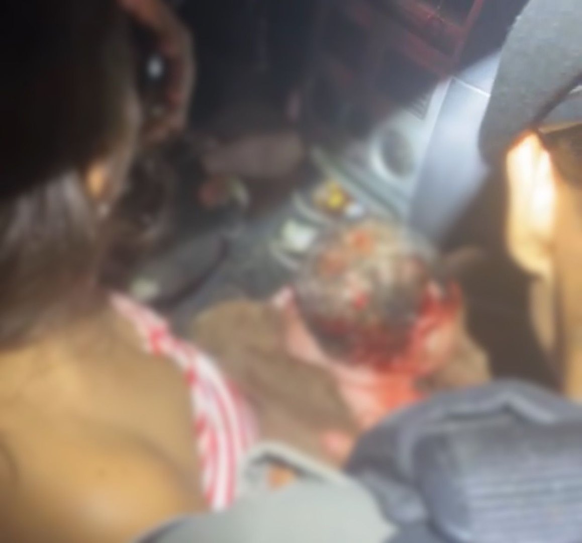 No meio do caminho, foi necessário parar o carro em um posto de gasolina para a criança nascer. O bebê não chorou e apresentava uma coloração azulada, pois o cordão umbilical estava impedindo sua respiração.
