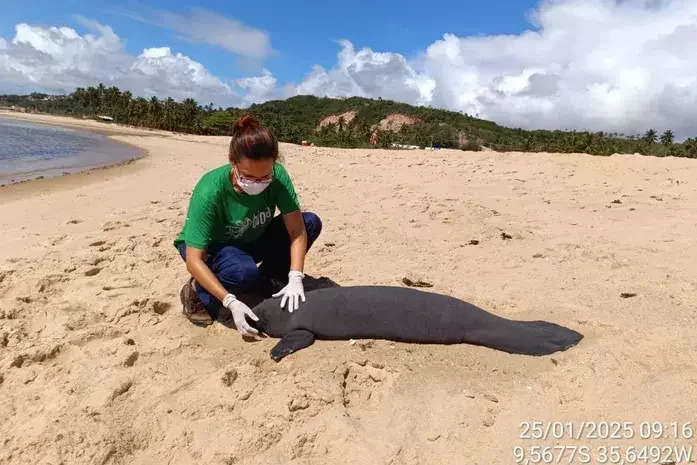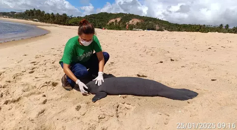 Filhotes de peixe-boi são encontrados sem vida em praia de Maceió