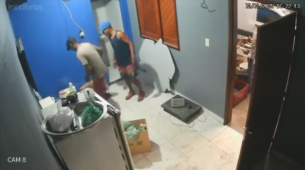 Câmeras de segurança registraram o momento em que os homens entraram e começaram a procurar objetos para furtar. A empresária informou que os criminosos retornaram na noite da última segunda-feira (04) para “concluir” o furto.