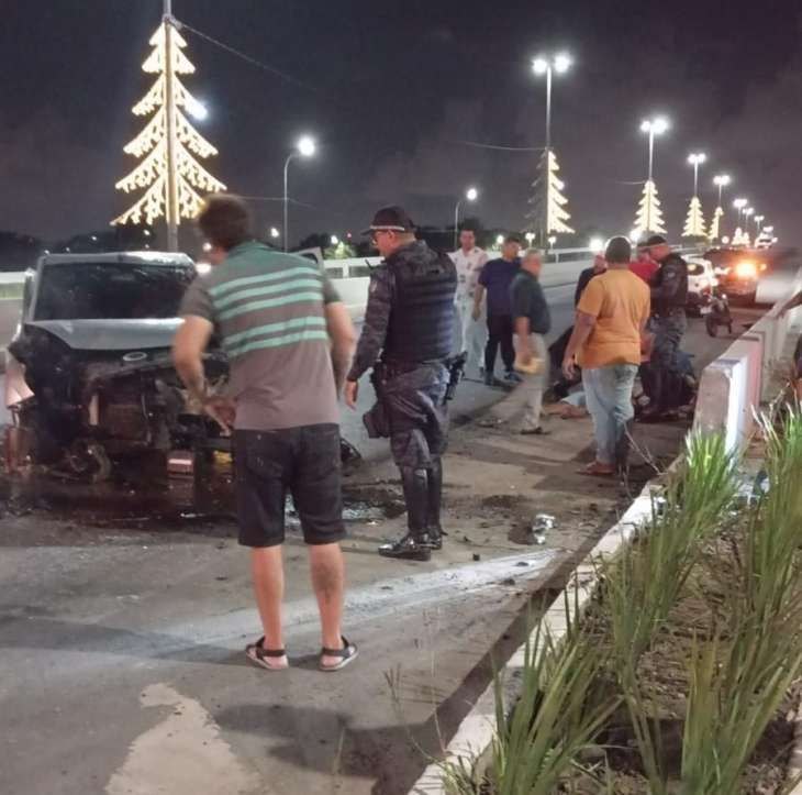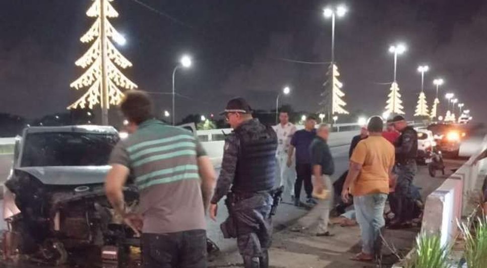 Idoso morre após bater carro contra mureta no viaduto do Aeroporto