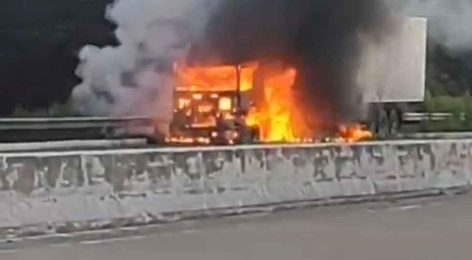Um caminhão baú pegou fogo na BR 101, localizada na rodovia Mário Covas, em São Miguel dos Campos.