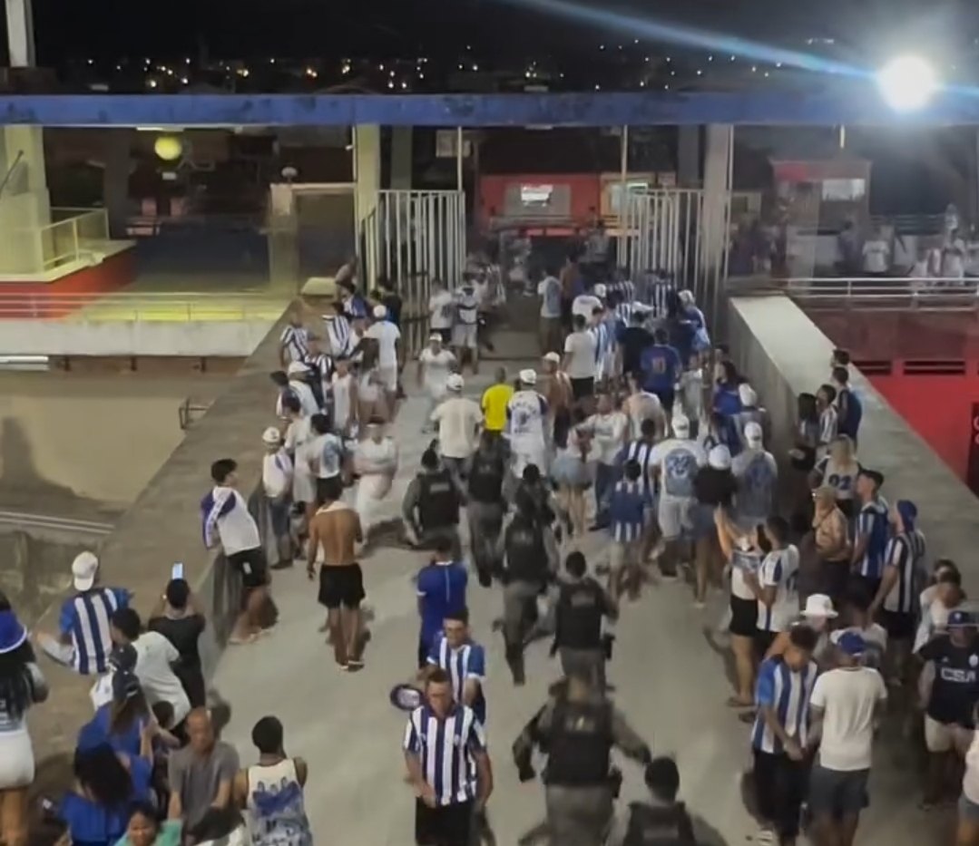 Em vídeos que circulam nas redes sociais, é possível ver os agentes de segurança pública dispersando um grupo em mais um cenário de violência no futebol alagoano.