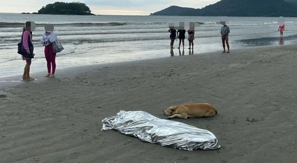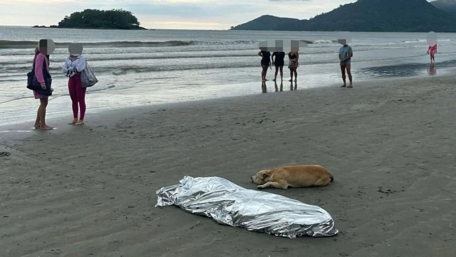 Um cachorro se deitou ao lado do corpo do tutor que morreu afogado na praia Central de Balneário Camboriú, em Santa Catarina. O caso aconteceu no sábado (22).