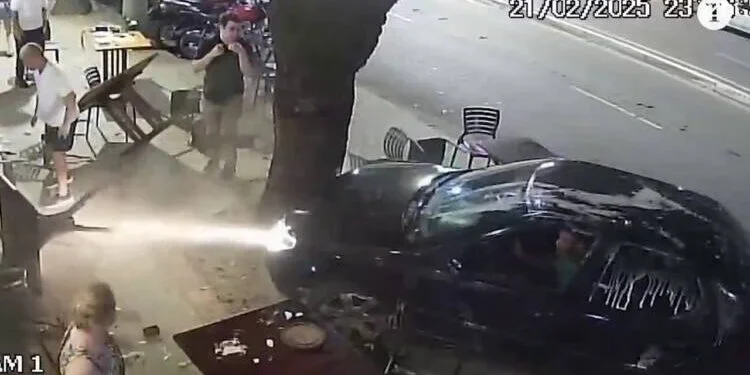 Motorista embriagado invade calçada e quase atropela clientes em bar