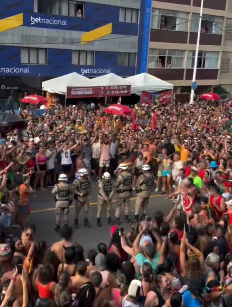 Fã do artista, a policial, identificada como Carol, sorri em meio a roda aberta pelos foliões enquanto os cinco PMs se colocam em formação. O cantor então autoriza o povo a correr e fazer festa em volta do grupo policial. Em meio a alegria, Carol não esconde a felicidade.