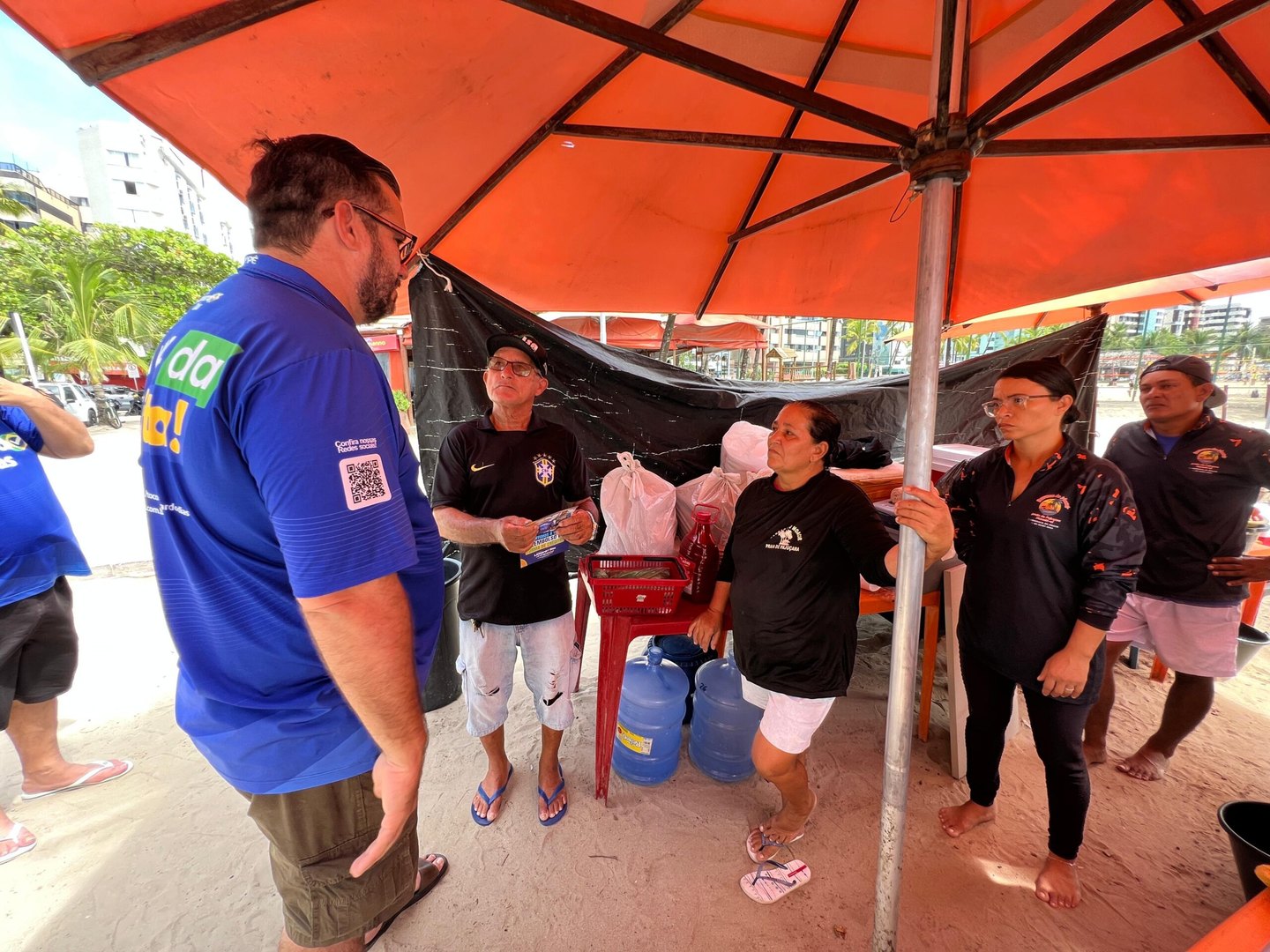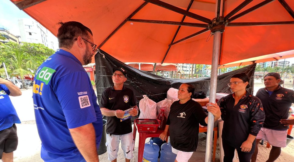 Na manhã deste domingo (9), o vereador Leonardo Dias (PL) esteve nas orlas de Pajuçara e Ponta Verde para explicar aos ambulantes que atuam na região sobre como funciona a anistia de tributos referentes ao período de março de 2020 a março de 2022 durante a pandemia da Covid-19.