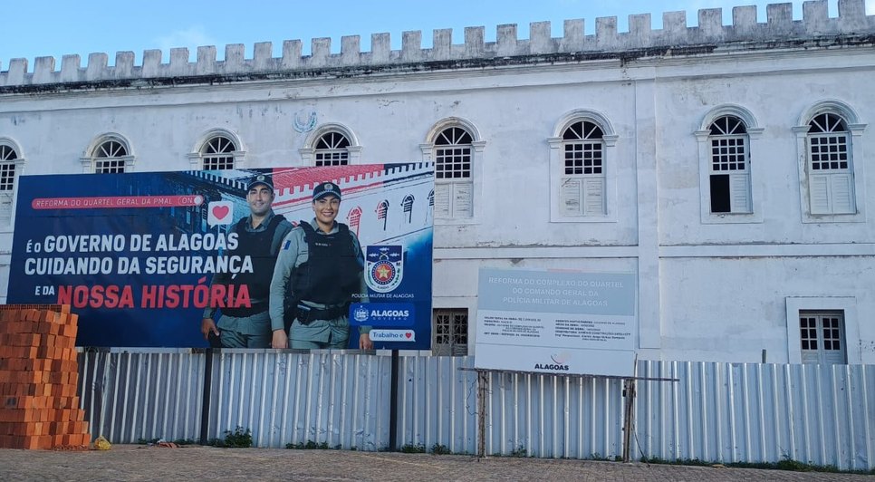 Mais uma obra do Governo de Alagoas segue sem conclusão. A reforma do Quartel do Comando Geral (QCG) da Polícia Militar, no centro de Maceió, que teve a ordem de serviço assinada em fevereiro de 2022, pelo então Governador Renan Filho, ainda não foi concluída, apesar do investimento de R$8 milhões.