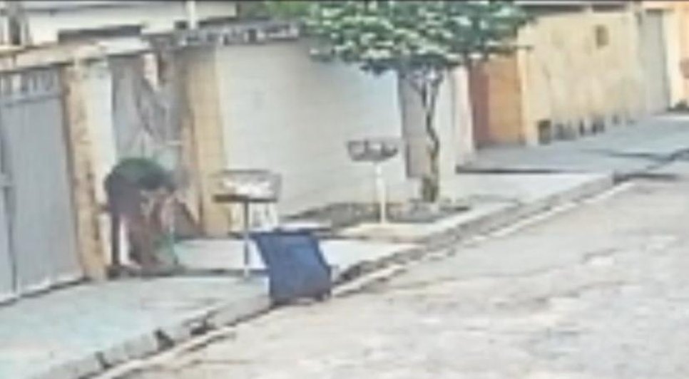 Nas imagens, é possível ver que um homem chega na porta der uma casa e finge observar o lixo para despistar a vizinhança. Ao perceber que o movimento, já reduzido, diminui por completo, ele rapidamente age para levar o material seja levado. Com o hidrômetro na bolsa, sai tranquilamente, enquanto o vazamento e o desperdício de água permanecem.