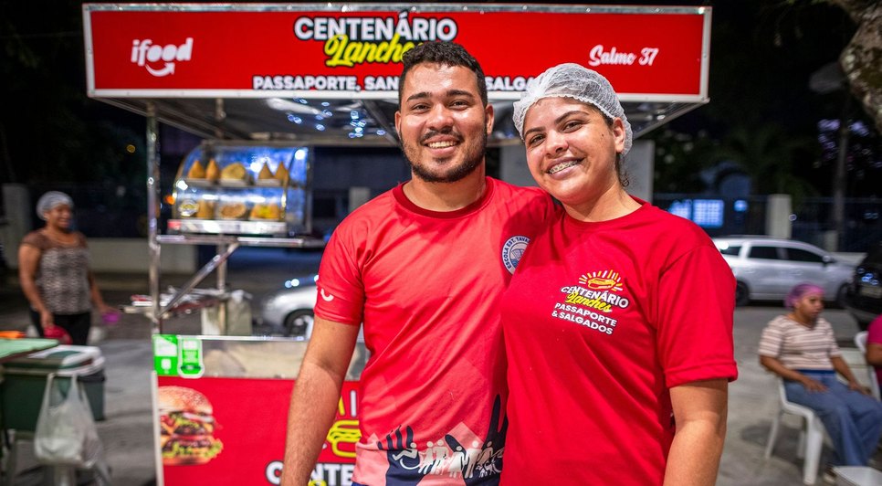 Crislayne Maria da Silva, de 25 anos, e o marido, Samuel Gomes dos Santos, de 21 anos, contam que a história de amor deles começou no Parque do Centenário e foi também na praça que eles decidiram montar o próprio negócio.