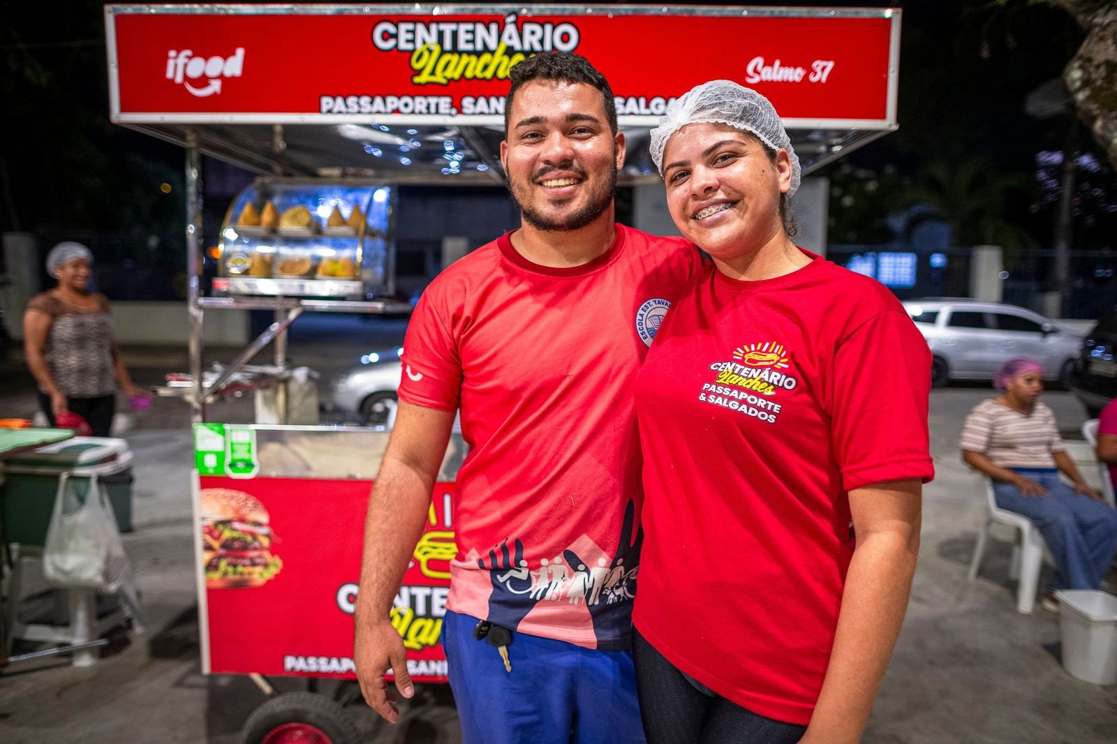 “Depois da reforma, chegaram outros ambulantes também, mas tem espaço e público para todo mundo vender. Por causa da praça, a gente ficou conhecido e tem cliente fixo que vem só pra comer do nosso passaporte. Estamos nos preparando para vender também por aplicativo”, afirma o casal. Eles contam ainda que em períodos de grande movimentação, como férias escolares e fim de ano, já chegaram a precisar contratar quatro funcionários.