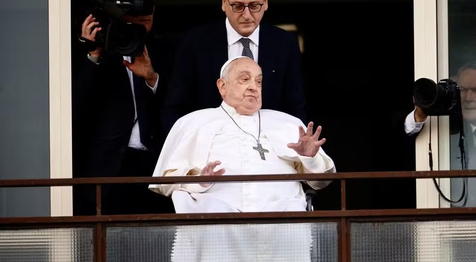Papa Francisco acena para fiéis e tem alta após internação de 40 dias