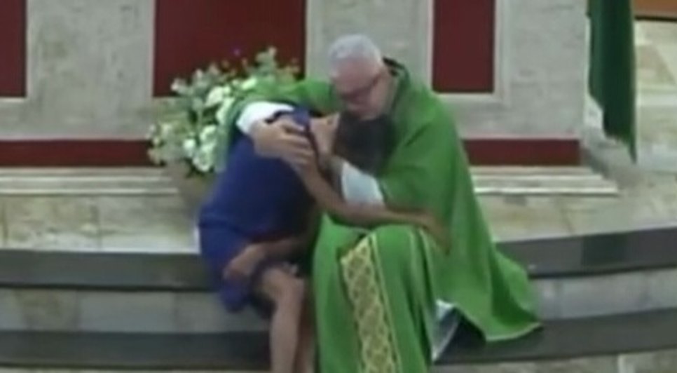 Amor ao próximo: Padre interrompe missa para abraçar mulher em situação de rua que estava chorando na celebração