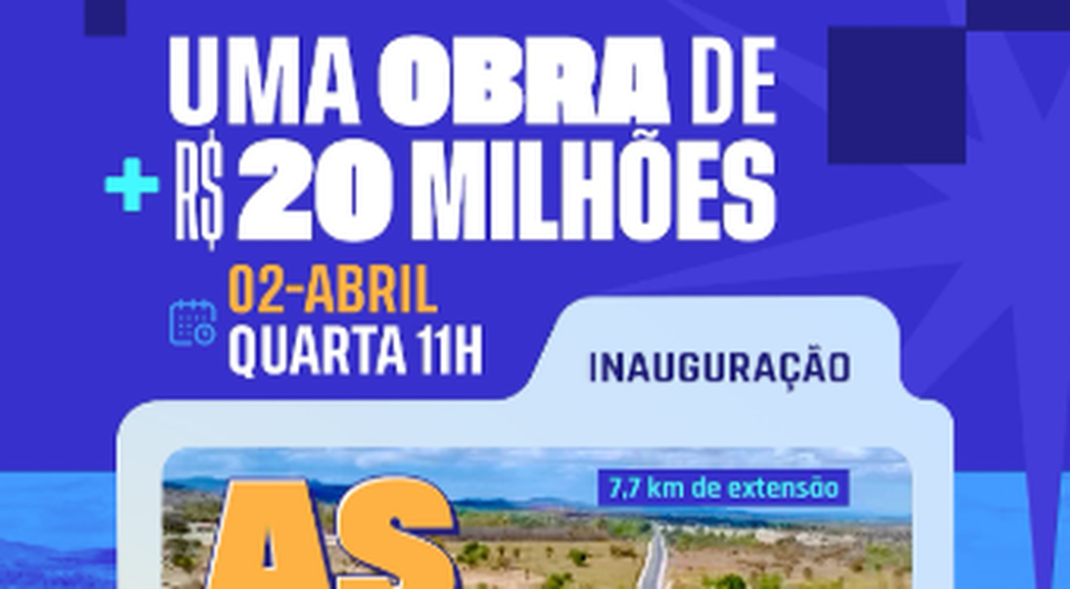 O prefeito de Inhapi (AL), Tenorinho Malta, utilizou as redes sociais no domingo (30) para anunciar a inauguração da pavimentação da estrada de acesso ao Povoado Promissão, que acontecerá na próxima quarta-feira (2), às 11h.