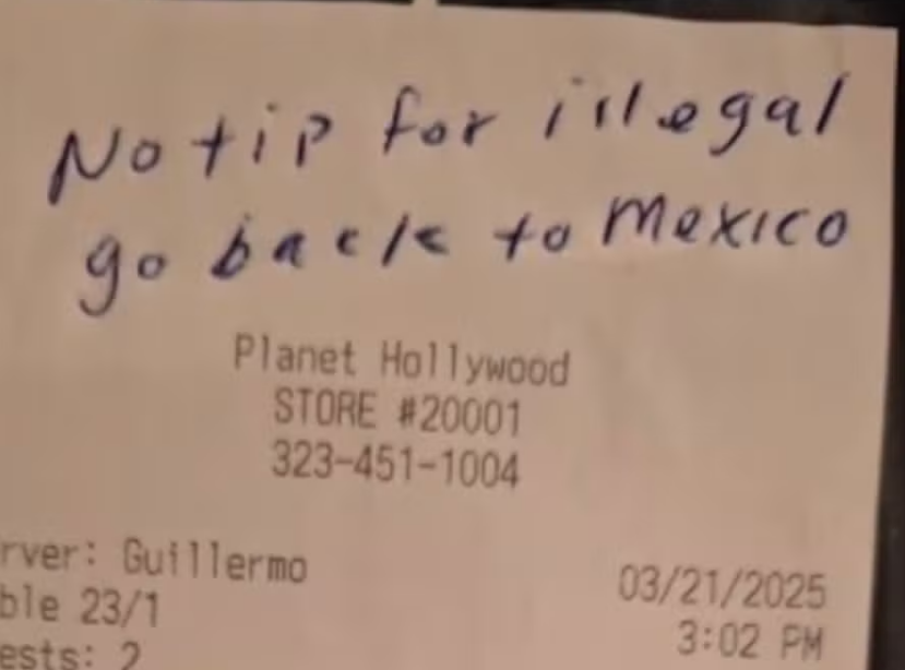 Guillermo Ortiz, um garçom porto-riquenho, recebeu uma mensagem racista e xenófoba deixada por um casal de clientes americano em sua conta. A situação ocorreu em 21 de março no restaurante em que ele trabalha em Los Angeles, Estados Unidos.
