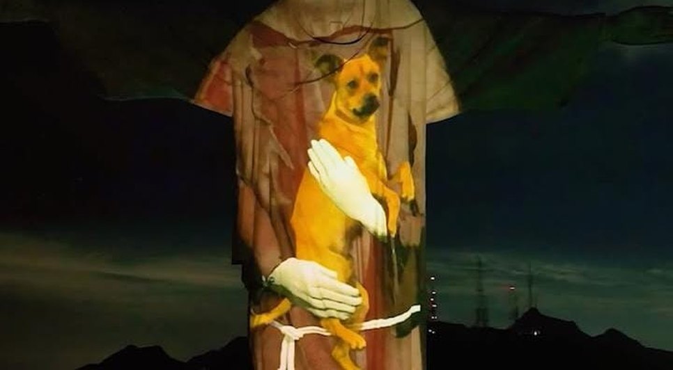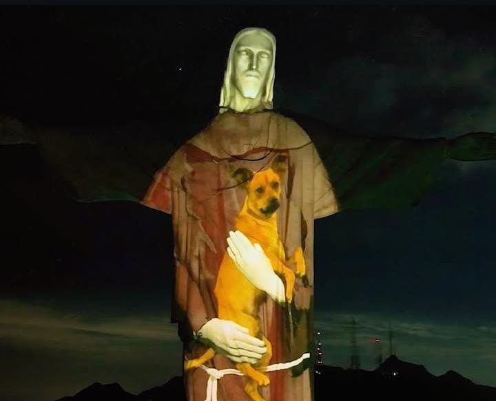 Cristo Redentor recebe projeção com cão caramelo em campanha de adoção