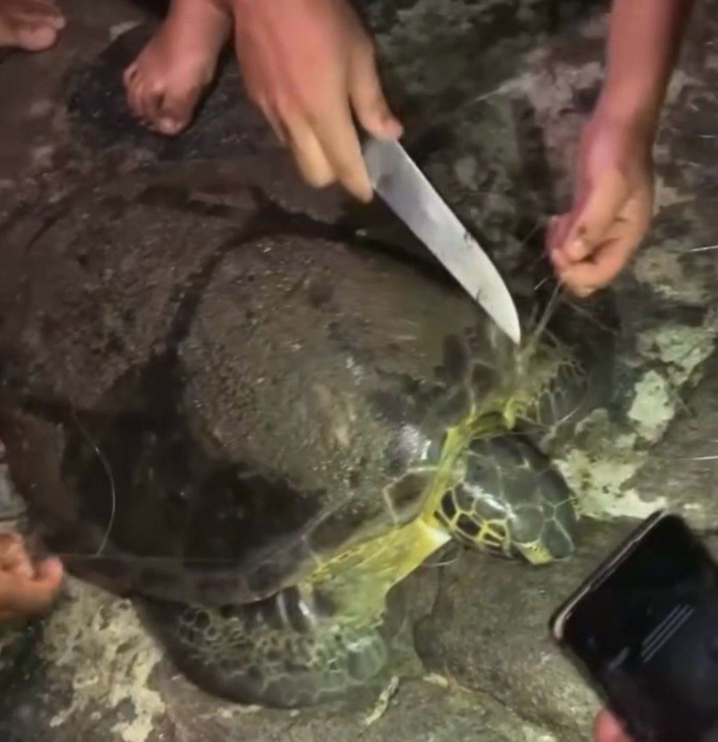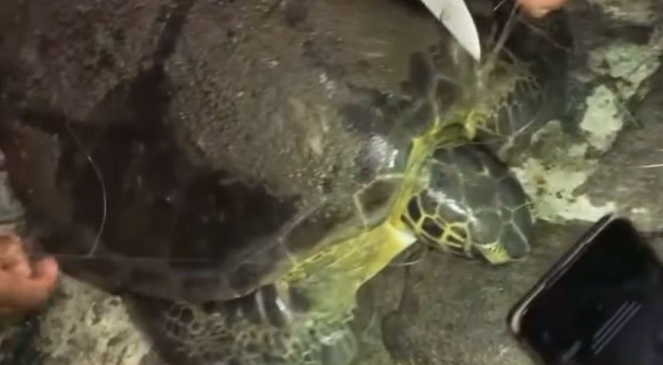 Um grupo de jovens ao avistarem uma tartaruga em perigo, não hesitaram em agir rapidamente para salva-lá, eles fizeram o resgate do animal que estava preso em uma rede.