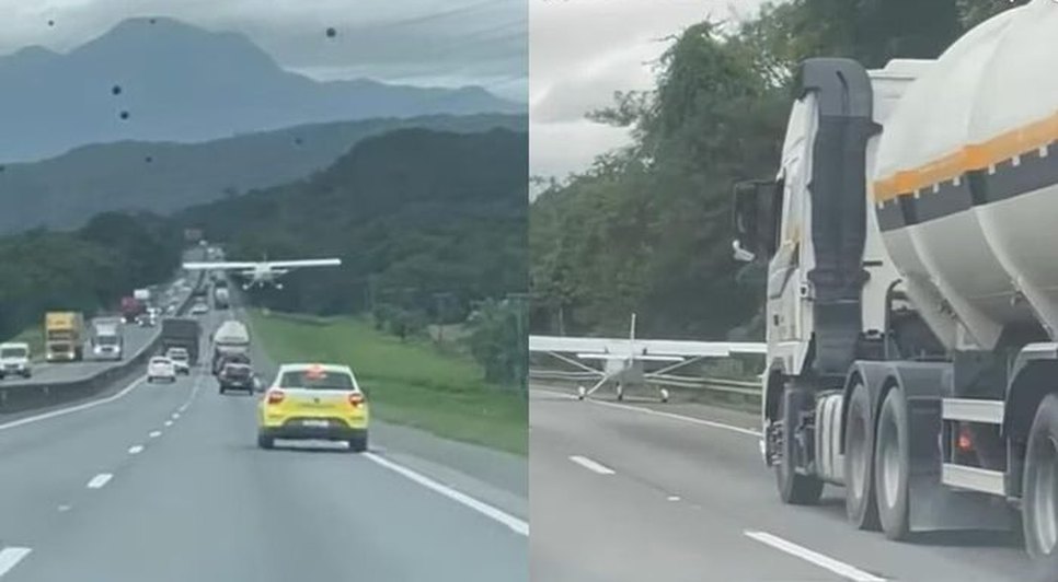 Havia duas pessoas a bordo, o piloto e o proprietário da aeronave, mas ninguém se feriu. Um vídeo gravado por ocupantes de um veículo mostra o avião pousando em meio a carros e caminhões.