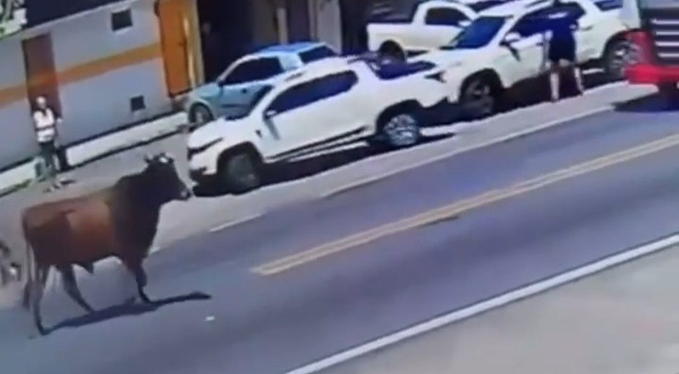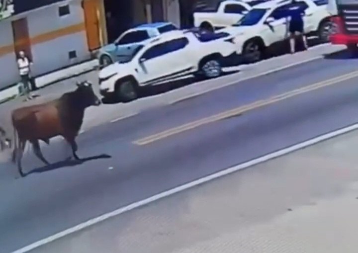Não há informações sobre qualquer machucado que a senhora possa ter sofrido com o ataque ou se o boi foi pego.