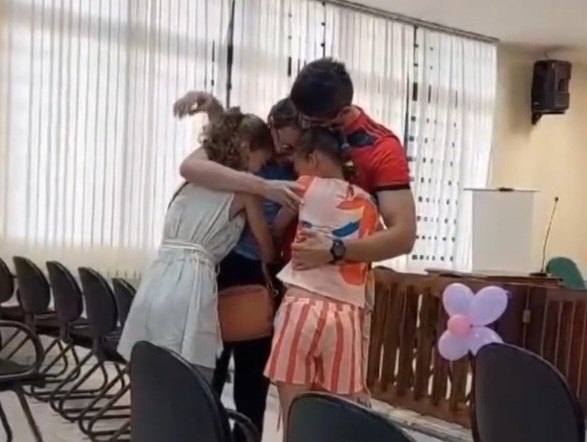 Gesto de amor! Casal registra momento em que realiza adoção tardia