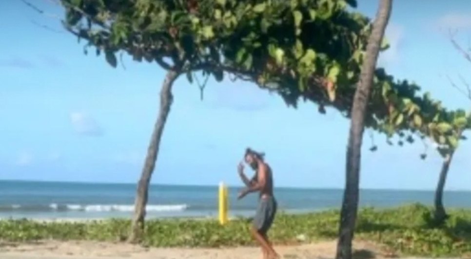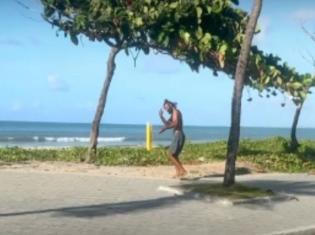 Neste sábado (05), a Guarda Civil Municipal prendeu o homem em situação de rua acusado de tentar jogar um paralelepípedo em uma atleta na orla da Praia da Avenida, em Maceió (AL).