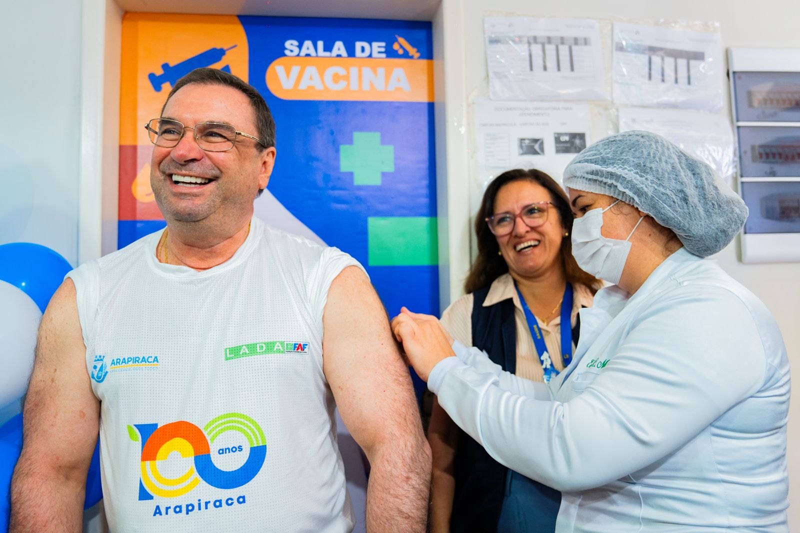 A campanha de vacinação contra influenza foi iniciada em grande estilo no município de Arapiraca. Nesta terça-feira (8), o prefeito Luciano Barbosa e toda a equipe da Secretaria Municipal de Saúde estiveram presentes na UBS Dr. Geraldo Lúcio da Silva, no bairro Primavera, para lançar a iniciativa e anunciar que todas as demais unidades já estão oferecendo o imunizante.