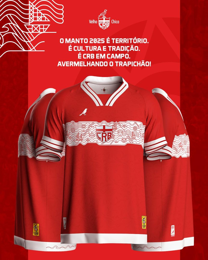 A estreia do uniforme será no próximo jogo em casa pela Série B do Brasileirão, no dia 17 de abril, quando o CRB enfrentará o Volta Redonda, às 20h. A coleção completa será apresentada oficialmente nesta quinta-feira (10), às 19h, durante festa em uma casa de shows no bairro da Jatiúca, em Maceió. Outras peças da linha também serão reveladas no evento.