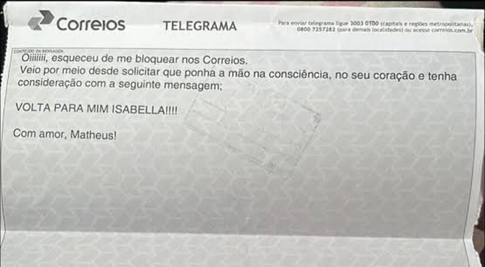 "Oi, esqueceu de me bloquear nos Correios", homem inova e envia telegrama para a ex-namorada após ser bloqueado nas redes sociais