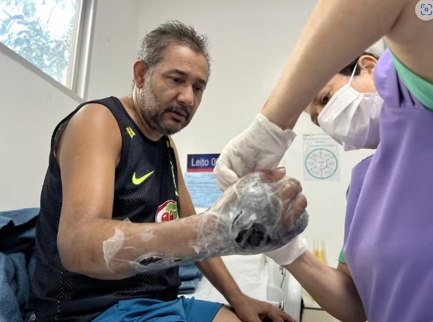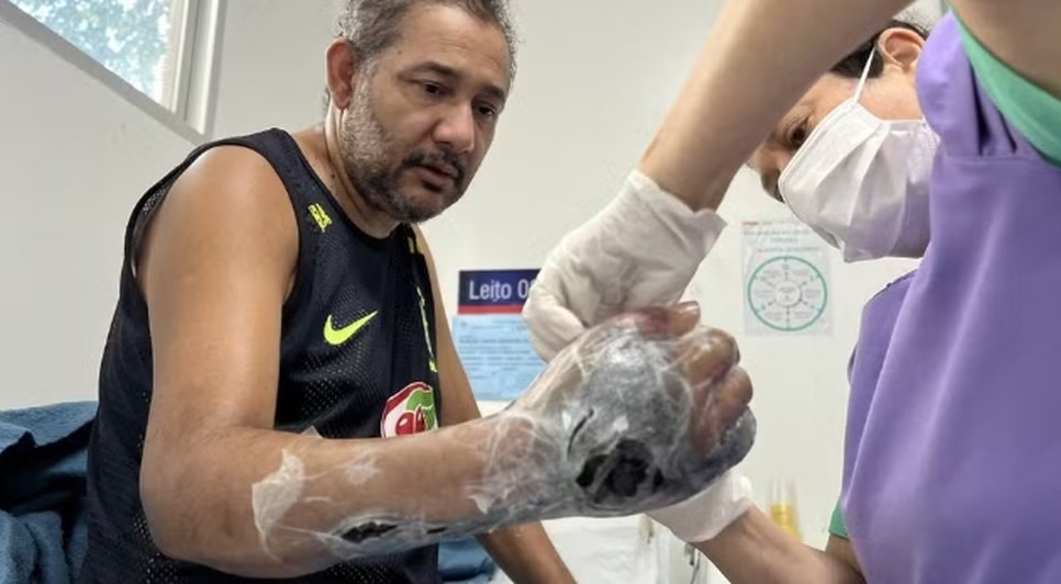 Diante da gravidade, Manoel foi transferido para o Hospital Geral do Estado (HGE), onde passou por desbridamentos, curativos especiais e uma terapia chamada Pressão Negativa, usada para acelerar a cicatrização e conter a infecção. “Meu braço começou a endurecer, depois apareceram bolhas que estouravam e arrancavam pedaços da pele. Eu achei que iam amputar, mas, graças ao tratamento, consegui sair com o braço salvo”, contou Manoel.