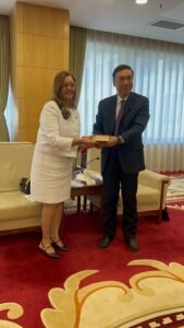 O primeiro compromisso oficial da Senadora foi uma audiência com o Deputado Li Bin, integrante do Comitê de Saúde da Assembleia Popular Nacional da China. Durante o encontro, foram discutidas estratégias para intensificar a colaboração científica entre Brasil e China, com ênfase na transferência de tecnologias e no intercâmbio de pesquisadores. Dra. Eudócia apresentou ao Deputado Li Bin o seu Projeto de Lei do Marco Regulatório das Vacinas contra o Câncer e defendeu a importância de aproximar os profissionais brasileiros das biotecnologias mais avançadas, como as imunoterapias com células CAR-T, terapias alvo e tecnologias baseadas em mRNA mensageiro.A parlamentar destacou a intenção de viabilizar testes experimentais dessas tecnologias no Brasil: “Nosso objetivo é garantir à população o acesso a tratamentos mais modernos, eficazes e personalizados, além de fortalecer instituições do nosso país, como a Fiocruz e o Instituto Butantan. A autonomia científica brasileira é essencial para o futuro da saúde pública no país”.