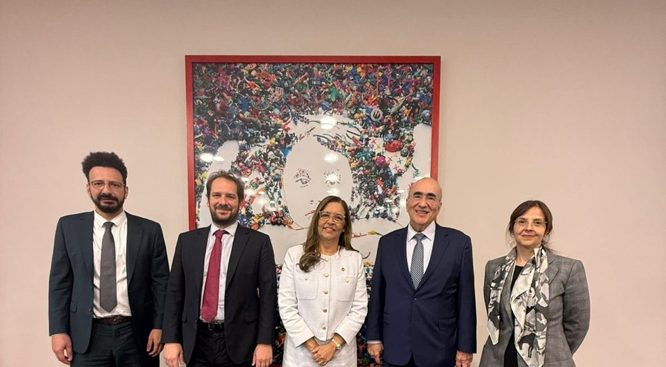 Em seguida, Dra. Eudócia visitou a Embaixada do Brasil em Pequim, onde foi recebida pelo Embaixador Marcos Galvão e pela Diplomata Letícia Frazão, responsável por Assuntos Econômicos e Financeiros. O encontro marcou a continuidade das discussões sobre cooperação bilateral na área da saúde, com destaque para a importância da parceria sino-brasileira no campo da ciência e tecnologia médica, especialmente no desenvolvimento de vacinas contra o câncer.