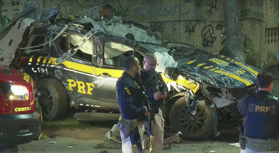Os policiais da PRF estavam em perseguição a dois motociclistas na Avenida Brasil, na Zona Norte da capital fluminense, quando a viatura colidiu com um carro de passeio. Com o impacto, os dois veículos foram arremessados. Os quatro agentes que estavam na viatura foram lançados para fora do carro. Três morreram na hora. O quarto policial foi levado ao Hospital Getúlio Vargas, recebeu atendimento e teve alta ainda nesta manhã.