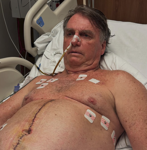 Hoje pela manhã retiraram o curativo na área dos pontos centrais para limpeza e averiguação da situação, além de dreno na lateral esquerda de meu abdômen. Agradeço imensamente a todos que têm enviado orações e mensagens de apoio. Elas fazem diferença. Brasília, 20 de abril de 2025 - Jair Bolsonaro"