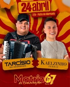 A festa será realizada no próximo dia 24 de abril, a partir das 22h, no Pátio do Mercado Público, no Centro da cidade. Entre as atrações confirmadas estão os cantores Tarcísio do Acordeon, Kaelzinho Ferraz e Dani Aguiar.