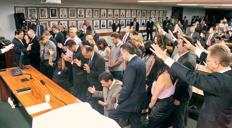 O relatório mantém a definição de bem de uso comum prevista no Código Civil, mas cria uma exceção para “reuniões fechadas ou de entrada restrita”, o que, segundo especialistas, pode facilitar a realização de cultos com pedidos explícitos de voto.