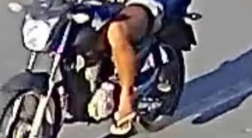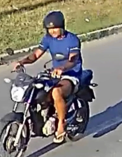 Nas imagens, é possível ver o suspeito, vestindo camisa azul e usando capacete, parando a moto ao lado da vítima para assediá-la. A mulher praticava atividade física em plena luz do dia.