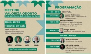 Voltado para dentistas e estudantes de graduação, o encontro reunirá profissionais de destaque, como Dra. Adryana Moura, Dra. Dulce Simões, Dr. Tiago Rets e Dr. Lucas Rodrigues. Com foco na valorização, atualização e qualificação profissional, o meeting busca fortalecer a categoria e criar oportunidades de crescimento e networking entre profissionais e acadêmicos.
