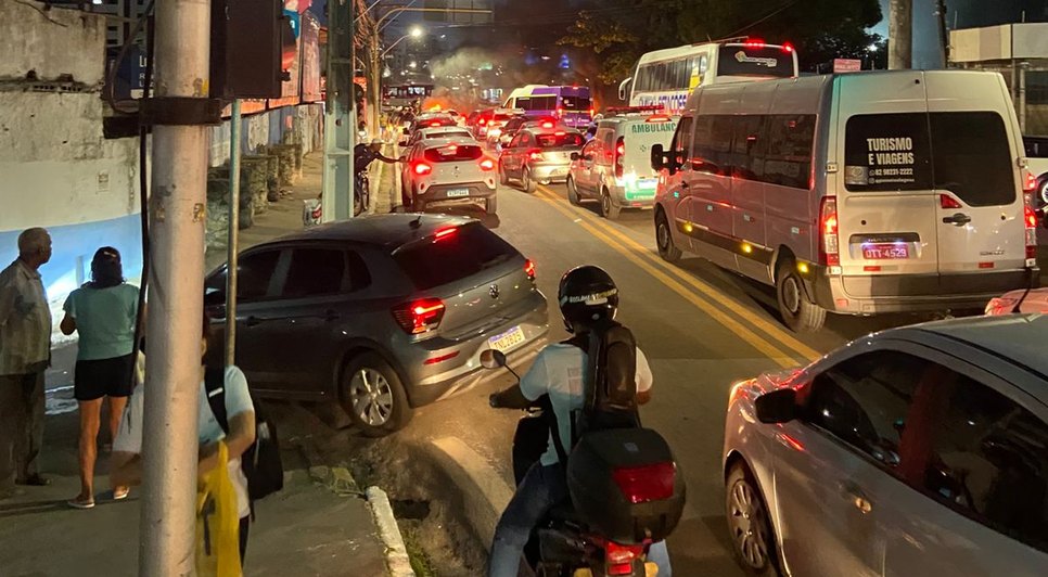 Moradores da Grota do Ary, no bairro Cruz das Almas, fecharam a Avenida Gustavo Paiva, próximo a entrada da Ladeira do Óleo, em protesto contra a empresa BRK.