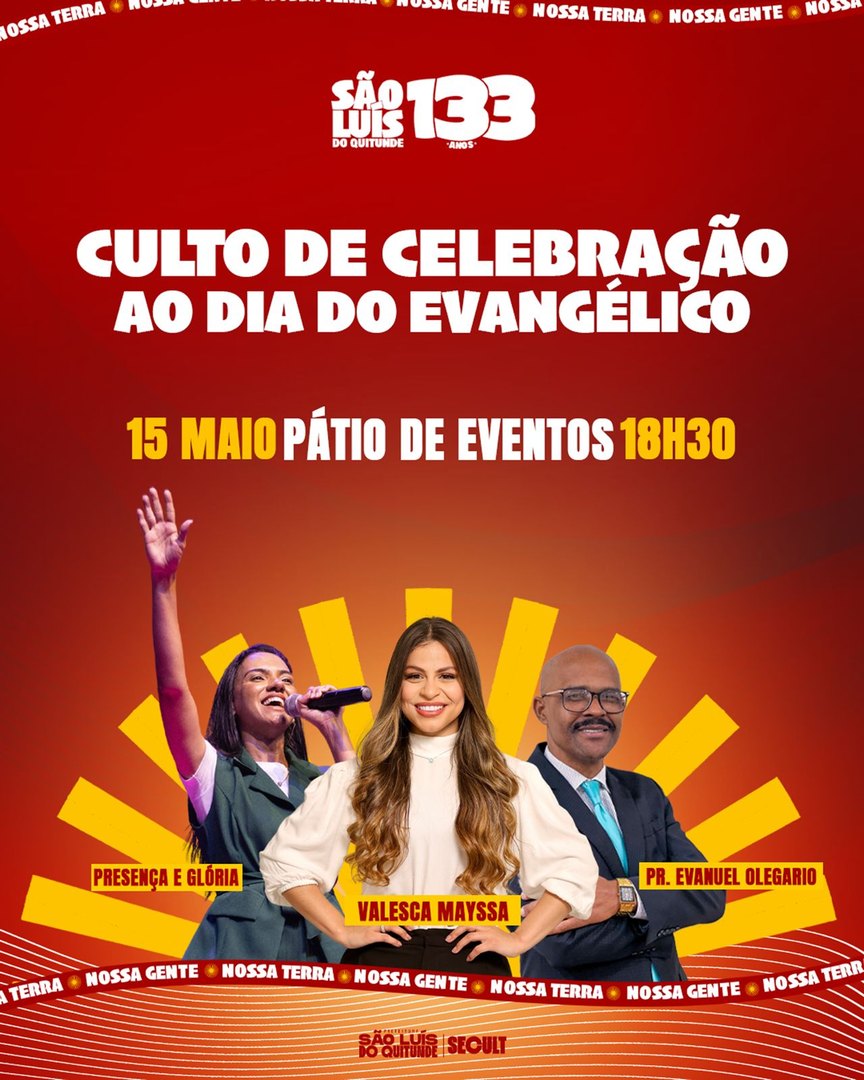 “O dia do evangélico representa muito para mim e, esse ano não poderia iniciar a nossa festa sem um grande culto em ação de Graças a tudo que Deus vem fazendo em nossa cidade. Com a ajuda e apoio de todos os pastores e líderes evangélicos do município, vamos realizar um grandioso culto para render graças e proclamar que só Deus é Santo. Vai ser um momento lindo de adoração e palavra. Nosso intuito é alcançar ainda mais vidas para Jesus e celebrar 133 anos da nossa querida cidade louvando a Deus.” Destacou a prefeita.