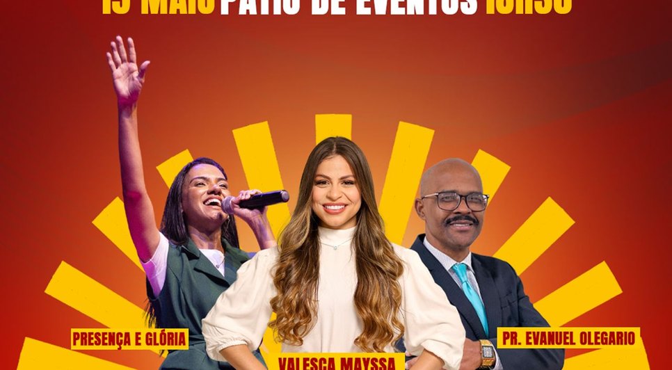 Com a presença e apoio de todos os pastores e líderes evangélicos da cidade, a prefeita Márcia Cavalcante irá realizar um culto em ação de Graças no dia 15 de maio, com a ministração do Pastor Evanuel Olégario e louvores da banda Presença e Glória e da renomada Cantora gospel Valesca Mayssa.