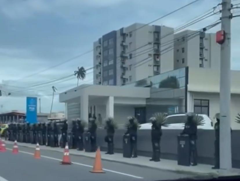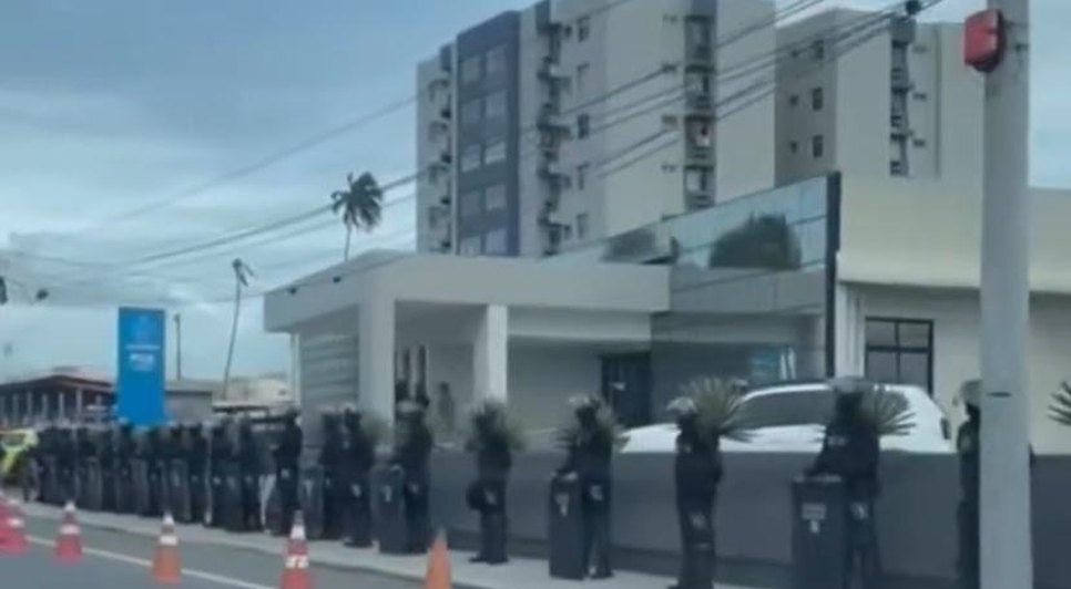 Um vídeo publicado pelo Deputado Delegado Leonam (União Brasil) em suas redes sociais mostra a presença de dezenas de policiais militares em frente à sede da Procuradoria-Geral do Estado (PGE), em Maceió.