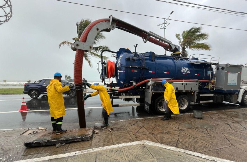 Diante da grande quantidade de chuvas que atingem Maceió desde o fim de semana, a Prefeitura de Maceió continua a fazer serviços que ajudam a minimizar os alagamentos na capital alagoana.