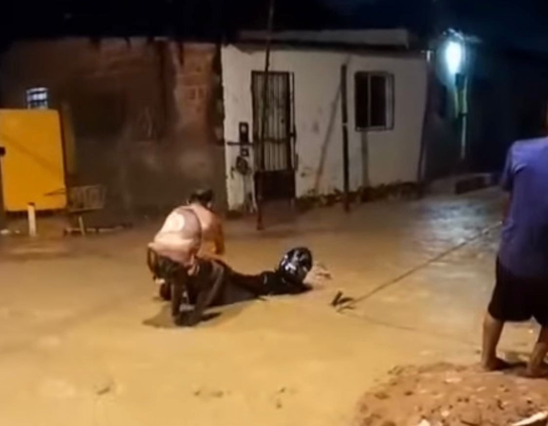 Um motociclista foi resgatado após cair em um buraco de uma obra, próximo à Grota do Arroz, no bairro Jacintinho, em Maceió. O local estava completamente alagado por conta das fortes chuvas que atingiram a capital.