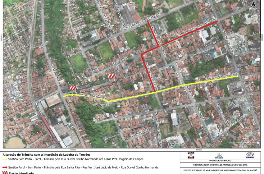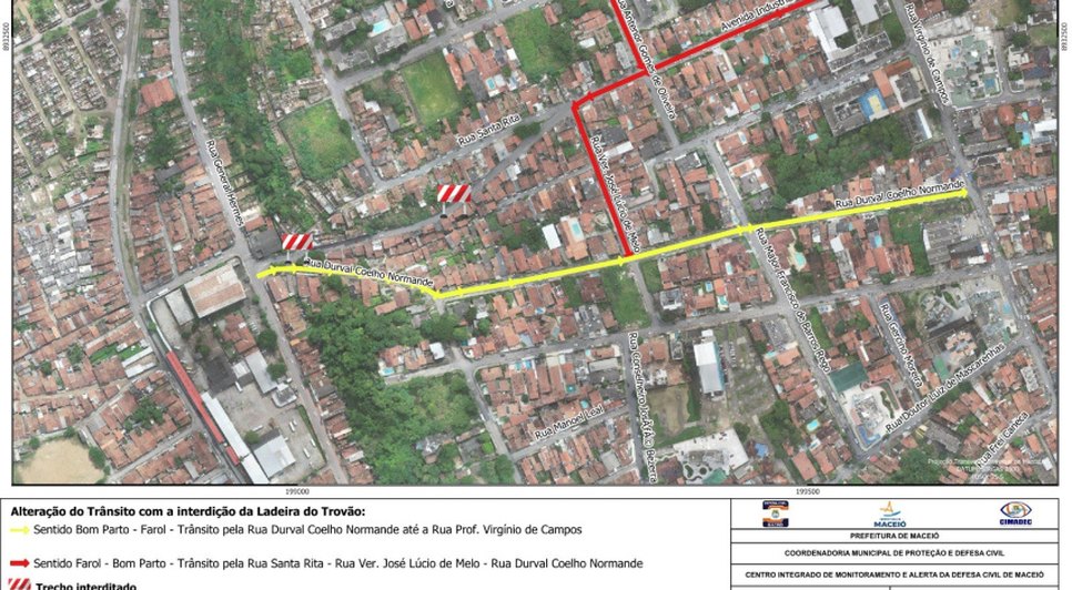 “A interdição visa a eliminação do risco que há na região, para que a vida de quem reside no local e quem passa diariamente pela ladeira, tanto pedestres como veículos, seja preservada”, explica Abelardo Nobre, coordenador-geral da Defesa Civil de Maceió.