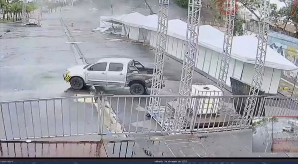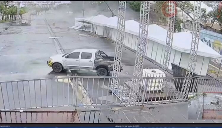 magens de uma câmera de videomonitoramento flagraram o momento em que um galpão desabou no estacionamento do Jaraguá, em Maceió, no fim da tarde deste sábado (24). A estrutura caiu de forma repentina, causando correria no local.