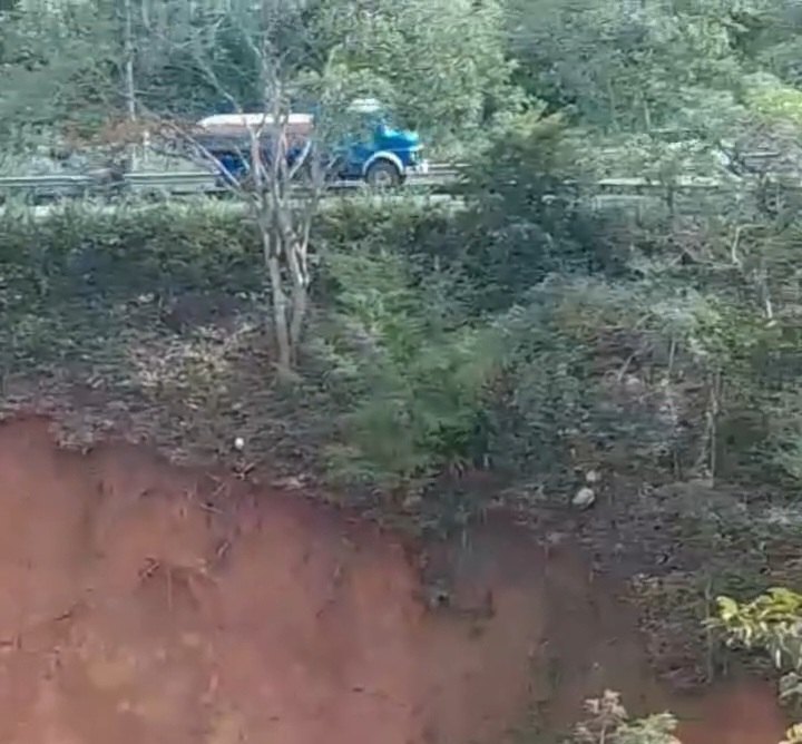 As imagens mostram o paredão de terra com instabilidade e riscos de deslizamento, onde a rodovia passa por cima do mesmo. O medo de uma tragédia é grande entre os moradores e também motoristas que transitam pela região.