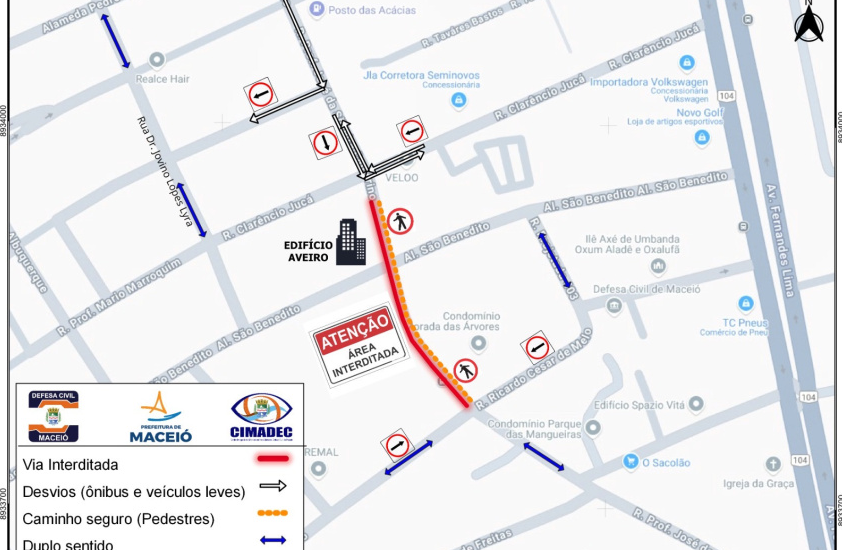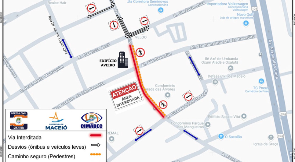 Nesta segunda-feira (2), um trecho da rua Professor José da Silveira Camerino, no Pinheiro, será interditado para demolição preventiva de um edifício que está dentro da área 00 (realocação) do Mapa de Linhas de Ações Prioritárias (v5), que delimita os bairros afetados pelo afundamento do solo.