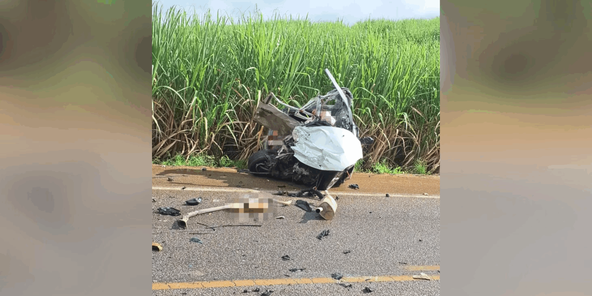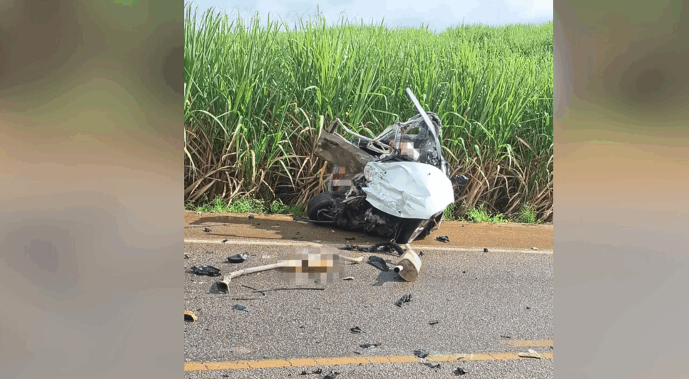 Imagens compartilhadas nas redes sociais mostram partes do corpo de uma das vítimas espalhadas na pista. Duas pessoas ficaram presas dentro do carro, que teve a estrutura completamente retorcida com o impacto da batida.
