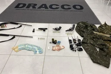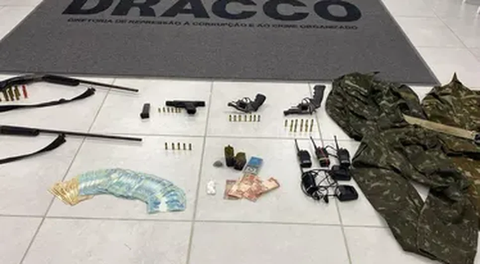 Durante a operação, foram apreendidas seis armas de fogo, entre pistola, revólveres e espingardas, além de munições e R$ 13.300,00 em espécie. A ação reforça o combate ao crime organizado no interior do estado.