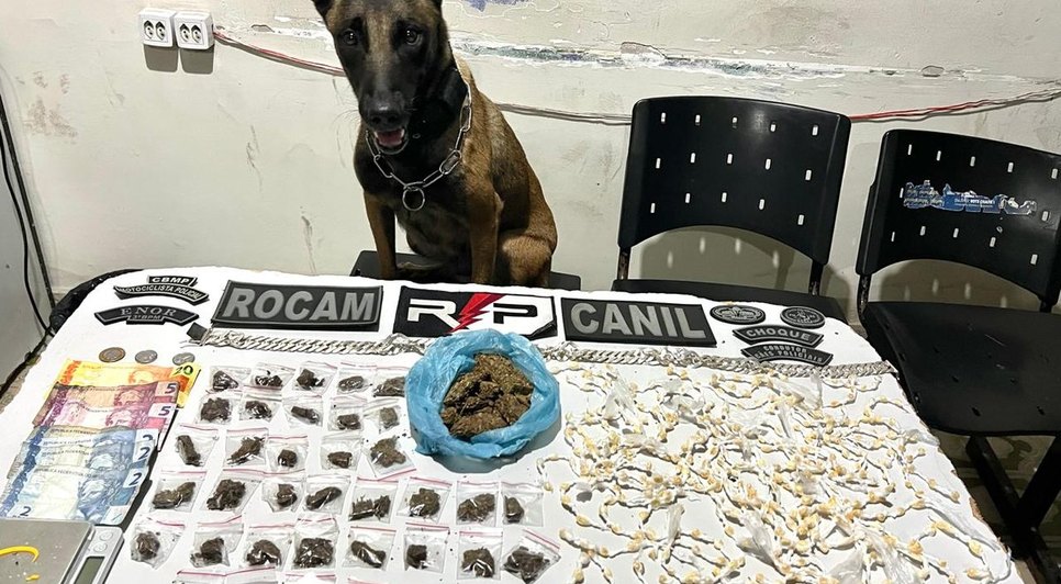 Traficante é flagrado entregando drogas e Cão da PM encontra estoque na casa do suspeito